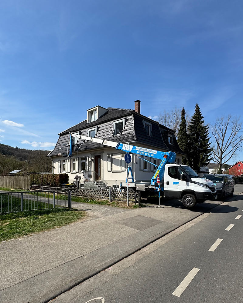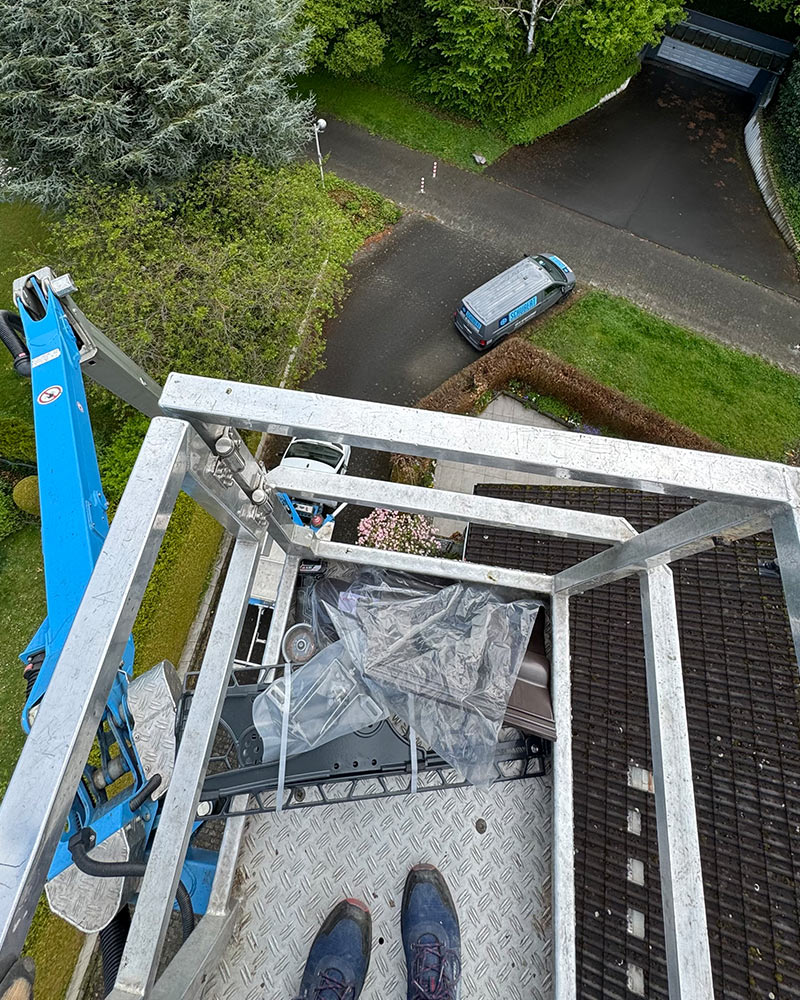 Auch schwer zugängliche Bereiche wie Dächer stellen dank spezieller Arbeitsbühnen kein Problem dar. So können wir maßgeschneiderte Lösungen selbst unter anspruchsvollen baulichen Bedingungen realisieren.